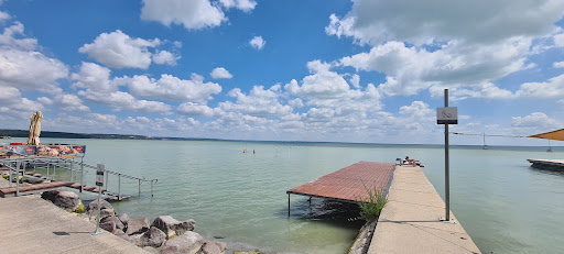 Read moreVery good beach, family friendly, very quiet at a fair entry price ( 6300 huf for 2 adults and 2 kids ). You can take your SUP if you have, there is plenty green space for everyone, colourfull chairs, benches. The water is a bit deeper here so can swim better and go for a Sup ride. There is also a shallow, sandy entry, covered with canvas for small kids. There is also a nice terrace and a small shop. Showers, toilets are very clean. Highly recommend even if you have to...