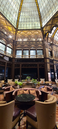 This place existed in Budapest more than a hundred years ago, and it was called "Parizsi Passage". Then it went into decay for tens of years, until it ended in the hands of some people with relations, was renovated and reopened to the public. So far so good. I just wanted to highlight 2 things: one, that this place is within the cultural heritage of the city, of which the current owners take advantage, and secondly, that it remains a "passage". Now to the point: we visited this place after it was reopened, few years ago, and already enjoyed here the expensive coffee and cake, and the somehow lacking service for the prices (as highlighted by other reviews). However, today we were in the area, having already had a place booked for lunch. What we wanted was to just cross the "passage" and briefly enjoy the beauty of this place, from architectural point of view. Well, surprisingly, the security guy at the door did not allow us to do this, conditioning our entry to the place by seating and consuming something. We turned around and left. On this occasion, I'd like to signal to the owners that this is an abuse: they own the bloody hotel, but in principle they do not own "the passage". Moreover, I think it is customary even in a restaurant/coffee place to be allowed to peak inside before deciding whether you want to sit or not there. You may even want to look at the menu before deciding to stay or not. This was not the case here, where the overly zealous security guard blocked our entry (and vision) with his body. I was appalled. I have visited gorgeous passages in Milan, Paris, Istanbul, Bucharest, Prague. I visited beautiful architectural gems in other capital cities (hotels, churches, restaurants), and nowhere the security guards were literally blocking the doors, not letting me enter to see anything "unless we buy something". Needless to say, the place was quasi empty, as I could see. Also, just in case someone wonders, we are not homeless or looking dangerous or smelling of alcohol. In any case, we moved on and went over to our preset lunch destination, a few streets away. But once again, I find this behavior and this treatment appalling and unacceptable, by...