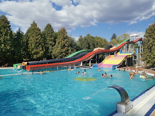 Augusztus 2. hetének egy hétköznapján látogattunk a fürdőbe. Parkolóhely bőségesen rendelkezésre állt az alsó fizetős parkolóban. Felnőtt napi 3500Ft, diák 3100Ft napijegy. Ehhez öltöző vagy szekrény nem jár. A fürdő egy nagy zöld területen helyezkedik el helyenként hatalmas fákkal amik jó árnyékos helyeket is adnak. Alig voltak a fürdőben ott-tartózkodásunk alatt szinte lézengtek, helyenként több száz m2 jutott egy családnak. A csúszda park 7 db csúszdából áll, ezekből kettő nem volt felszerelve sem, csak félre voltak téve az elemeik. A nagy csúszdákból a 2 középső működött a két szélső nem... ill. rákerdeztek a gyerekek és az volt a válasz, hogy nincsenek elegen, hogy bekapcsolják... Érdekes, hogy ezt nem tüntetik fel amikor bemész, hogy ha nincsenek elegen akkor korlátozott a szolgáltatás... de az ára nem. Minden esetre délután bekapcsokták a nagy csúszdákat is. Itt álljunk meg mert szerintem nagyon veszélyes ez a rész. Azaz a két legnagyobb csúszda a piros meg a zöld a két legszélső, középen meg leginkább a kisgyerekek által használt két csúszda van. A gyerekek amikor leérnek oldalra mennek keresztül a nagy, gyors csúszdák vége előtt ahová felnőttek, nagyobb gyerekek érkeznek úgy 40-50km/h sebességgel úgy, hogy semmit nem látnak. 10 perc alatt 1 balesetet és egy majdnem balesetet láttam. Szerintem egy 100 kg körüli felnőtt becsapodása egy kisgyerekbe szörnyű következményekkel járhat... Csak szólok... Az uszómesterek ezt a részt nem figyelik, mindenki akkor indul amikor akar és nem feltétlenül látja, hogy egy kicsi mikor megy keresztül... A szivárványos csúszda volt a kedvenc. Ezen kívüli van egy csobogókkal ellátott élmény medence, egy 25m-es rendes medence. 2 db. szabad téri termál vizes medence. Babáknak szerintem elegendő kis medence játékokkal. 12-13 éves gyerekeknek már nem igazán nyújtott elegendő élményt a fürdő egy fél napra sem. Ha nem lenne egy szálloda is a fürdő területén akkor szerintem egész nap pár száz embernél nem lennének többen de így sem voltak sokan. A benti medencéhez, szauna stb. nem vettünk jegyet. Remél tudtam...