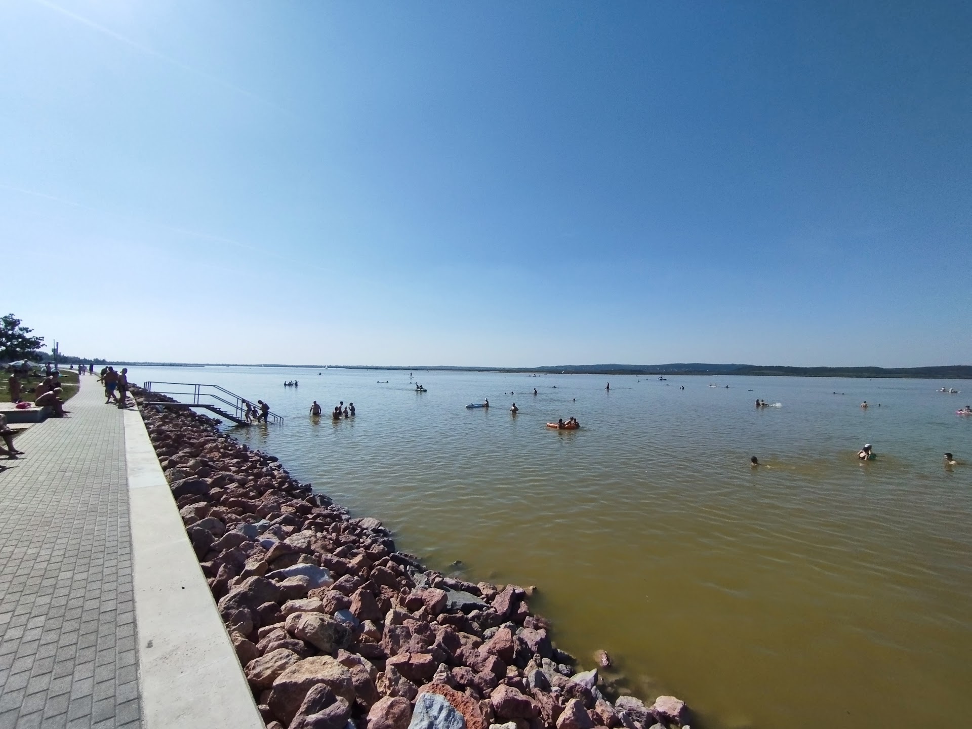 Read moreSzinte csak szuperlativuszokban tudok beszélni a helyről; gondolkoznom kellene rajta mi volt a gyenge. Igaz a parkolást a fizető részen oldottuk meg ami egy napra 2000 Ft volt viszont magas fák a teljes parkoló területén kényelmes nagy parkolók és mindenhol árnyék. A part közel volt így többször is könnyedén elértük az autót ami ugye nem forrósodott fel, így pl a hűtőtáska sem. A part kulturált, sok büfé, fagyizó, étterem mindenhol normál emberséges árakkal. Pl fagyi 550, hamburger 1500-2000Ft, csöves kukorica 500 stb Lehet sokfajta vizidolgot kölcsönözni, mi crossbike-ot vettünk ki, de sup ugyanúgy volt mint kenu, vizibicó sőt még szörfoktatás is. Hajókázási lehetőség. A part kiépített, sok lejáróval, a víz sokáig derékmagasságú, hínár s szmötyi mentes. A víz kellemes. Maga a strand ugye ingyenes, de nem volt tömeg, az emberek kulturáltak, kiépített séta- és bicikliút valamint sok fa és tusolók, öltözőhelyek. Nagyon kellemes élmény volt, szívesen visszajönnék bármikor!