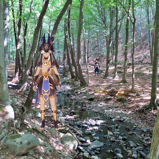 The place itself was gorgeous except I had a few problems. There was this weird who the hell knows what mask or hat on his head and he was so weird. He came up to me and started barking along with a fennec fox human thingy that was in the background eating mushrooms off of the trees. Along with that there was a green haired girl on the floor reviewing people's outfits. Overall I'm traumatized from...