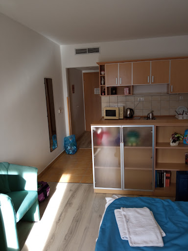 Az apartman a Mendan Apartmanház-ban található a 2. emeleten. Lift van. 24 órás porta. Közel mindenhez ami fontos! (Thermálfürdő, szórakoztató központ, éttermek, coop) A szállás jól felszerelt. Konyhában hűtő, KVfőző, KV, cukor, tejpor, kanalak, poharak... Fürdőszobában zuhanyzó, kézmosó, tiszta törölközők, WC. Hálószobában kényelmes francia ágy, TV, fotel, pótágyak. Egyszóval tiszta, kellemes és kényelmes szállás. A földszinten medence és szauna, amelyek szabadon használhatóak. A klíma valóban nem tökéletes, de ez nem a szállásadó hibája mert központi klíma van az...