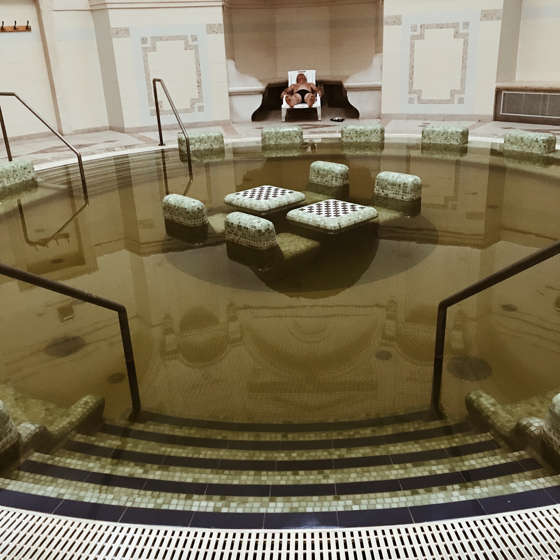 Great place to relax, if you don't get bored too easily. Located within walking distance of Széchenyi Tér and Reök Palace in the city centre, Anna Fürdo is still relatively unknown by the tourist as a bath house (spa) simply because they just see it as a beautiful building to be photographed, which means those that enter get a relaxing experience due to the bath house not being overcrowded; especially during weekdays. I visited Anna Fürdo on a Friday (22nd May 2015) at 11am and finished at 1pm whereby 2 Hours was more than enough time to experience the various jacuzzis, pools and main sauna and to have a good look around the place. Apart from the medical sections, which are located on the upper floors, everything else is located on the ground floor. As you enter the building the wellness section is on your left and the thermal section is on your right. One nice touch they had here, in the foyer/lobby/main entrance, was the Stannah stairlifts; because of the few steps leading up to the entrances of the wellness and thermal sections. Many of the clientele are fit/able elderly, local, people who may have slight difficulty getting up and down steps. Hence one of the reasons why they might be visiting the spa; to use its therapeutic pools. The above said does not mean younger people and children cannot visit, of course. When I visited there were some young couples and middle aged people among the elderly. Mothers also take their babies there. So do not think it is a place exclusively for the elder residents of Szeged because it is not. It is for tourists, middle aged and younger people too. Three reasons I believe Anna Fürdo has a middle aged to elderly age group associated with it is because it promotes health benefits (young people do not care too much about health because they think they are already healthy), it promotes its medical treatments and overall spa as being about wellness (again, the younger generation think they are okay) and because the younger generation tend to visit Napfényfürdõ Aquapolis instead. In reality Anna Fürdo is not a fun place for young children who want to run around, scream and splash. It is a tranquil place for relaxation. Regardless of age, one thing to be careful are the saunas. The main sauna I used states on its door that temperatures can reach over 80 degrees fahrenheit, which I found too hot. It was like the sun was right over me, baking me, with a heat wave at the same time. I only lasted five minutes! The locals were talking in the sauna and some almost sleeping as if the heat was not there! Had to be seen to be believed! Meanwhile the sweat was pouring off me every second, as opposed to every minute like in other saunas I have used elsewhere. So it was effective, but at the same time I was cursing the heat and trying to breath at the same time! The steam room was great, as was the swimming pool and other plunge pools. My favourite had to be the main massage pool (jacuzzi) in the wellness section that comes on every 10-15 minutes for around 5 minutes. The great thing about it is that it goes from slow jets/sprays of bubbling water to fast to really fast, giving the overall effect of a nice relaxing water massage. In conclusion I would say go there around 11am because that will give you one hour, before the wellness section opens, to use the thermal plunge pools, sauna and swimming pool. The other hour could be used to enjoy the wellness pools, other saunas, manicure/pedicure/haircut services and café for example. There are also deck chairs outside in the inner circle of the building for sun lovers to enjoy. I think the average person might get bored after two hours at the spa, unless they really enjoy lounging around all day! Price-wise, compared to the UK, 1,650 HUF (under £5) can not be faulted. Excellent...