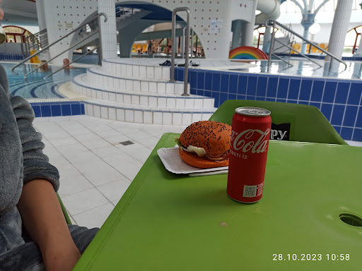 Read moreHelyi lakosként gyakran jártunk ide, a hely közelsége miatt. De a mai nap után azt hiszem befejeztük. 1 órás aquaparki strandolás után "nagy örömünkre" leszakadt az ég, hát átmentünk, már csak a gyerekek miatt is. Itt sikerült mind2 gyereknek jegyet venni, holott az 5 évesnek nem is kellett volna, ha már 6 év alatt ingyenes. De annyira idegesek voltunk az időjárás miatt, nem is vettük észre egyből. Később lett gyanús, miért is fizettünk annyit. Mindegy, lenyeltük. De hogy a fürdőtérben a cuccot nincs hova lepakolni, már azért elég durva. 4ünknek legalább 1 ágy is luxus lett volna. 1 db müanyag székre raktunk mindent, mert a másikat ami még üres volt az úszómester húzta ki a gyerek alól, hogy mit képzelünk nem látjuk,hogy az az övé?? Kiírás szerint étkezés az emeleten... Ahol 1 db szék sem volt, gondolom az már mind a fürdőtérben helyettesíti a nyugágyakat. Fénykorában tele volt a hely ágyakkal, most még így, hogy alig voltunk sem volt elég. (Pár hónappal ezelőtt sem tudtunk lepakolni, az egyik sarokba!!! tettük le a táskánk, akkor nagyon sokan voltak, azért, hogy bejuthassunk fél órát álltunk sorba, mert nem volt öltöző...utólag már eztis bánom(a gyerekek miatt maradtunk csak). Az egész hely, koszos/mindenhol áll a víz, büdös mosdók, omladozó vakolat, a plafonon törött ablak, ami bevan ragasztva/foltozva, úszómester végig a telefonját nyomkodta, no comment... drága, még egerszegiként sem ér a kedvezményes jegy sem annyit amit ők elkérnek érte. Eddig elnéztünk sokmindent. Most betelt a pohár....