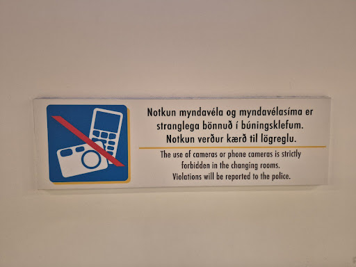 To visitors: there are signs in English and Icelandic warning about not tracking water into the locker area. Place your towel on the rack by the showers before you head to the pool. Although, watch out for thieves. My wife's towels were stolen on Aug 29 and they had to drip dry. The facility staff did not offer a solution for the stolen towels, other than "lost and...