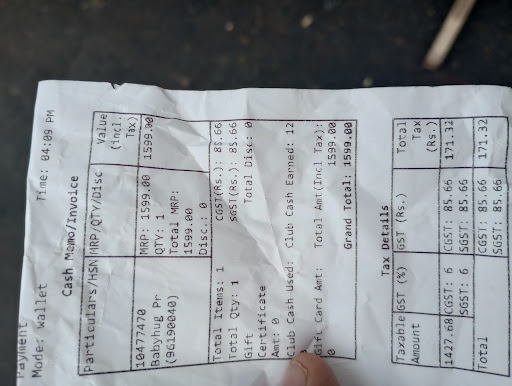 I have been CHEATED by the staff at this store! Despite being a regular customer, Iâve only now realized that Iâve been taken advantage of all this time. Every time I return to my hometown, I make purchases worth at least 2k from this store. However, each time I pay, they never provide a printed bill and assure me that Iâll receive the bill as a message on my phone. Yet, I never received any bills. Today, when I bought directly from the FirstCry website, I received a cashback for my purchase.