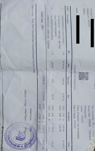 In April we went to buy an AC from Lulu Connect Kochi. From the moment we entered there we had to wait for a long time till we were attended to plus, the products were not there. He had asked us to wait till the 25th. No choice, so we agreed. Invoice no 041/0032583. delivery date was 25-04-2023.