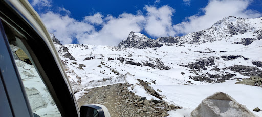 Next comes another campsite named satrundi. The journey from there onwards was very nice. The road in the middle of the snow.Snow on both sides of the road! The weather there is changing so fast. It is very cold over there. temperature 🌡️ 2⁰c. It was feeling cold inside the car too.And you can see the view there in the photos. The view after reaching the top was worth seeing. ❤️ Jannat 😍