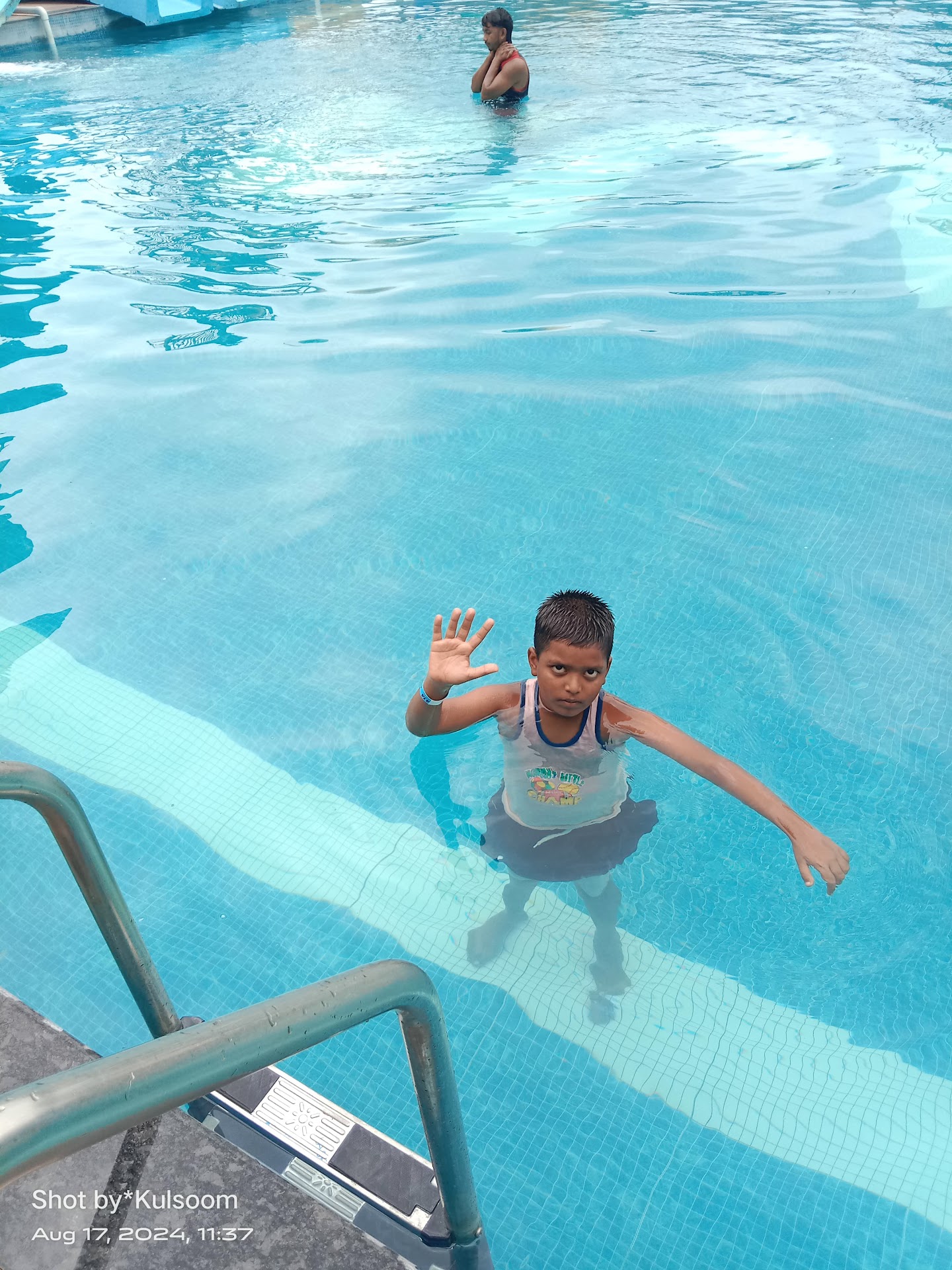 As part of the package, we were asked to store our bags and valuables securely before proceeding. Breakfast was then served, which included unlimited idli sambar and noodles. After breakfast, the swimming pools were opened, and we noticed that separate pools were available for children. There were multiple water activities to enjoy, such as slides and large inflatable balloons.