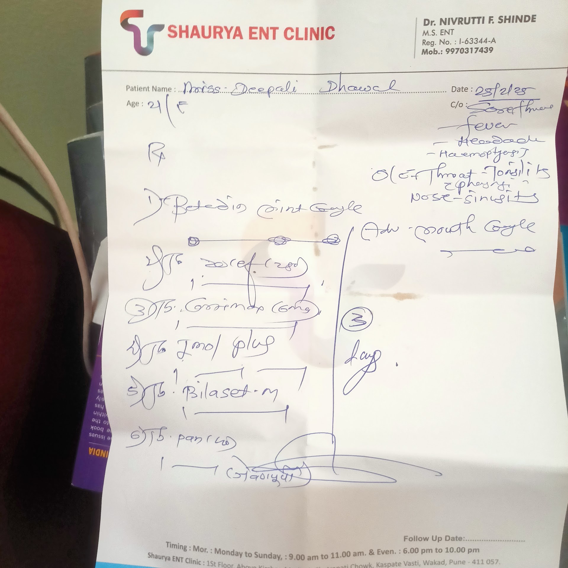 Read moreWorst experience. Doctor is completely money minded and does not care for the patient and their recovery . I had a very bad experience. I went to the clinic reading the good reviews posted , which turned out to be false. I was suffering from cough and tonsilitis and doctor gave me 3 days medicine after initial checkup and asked me to get follow up done after 3 days. He charged 400 for consultation. and he was charging extra 100 Rs for putting the ointment inside the throat, which should ideally be included in the consultation fees. as the whole bottle of ointment would have cost not more than 100 Rs.