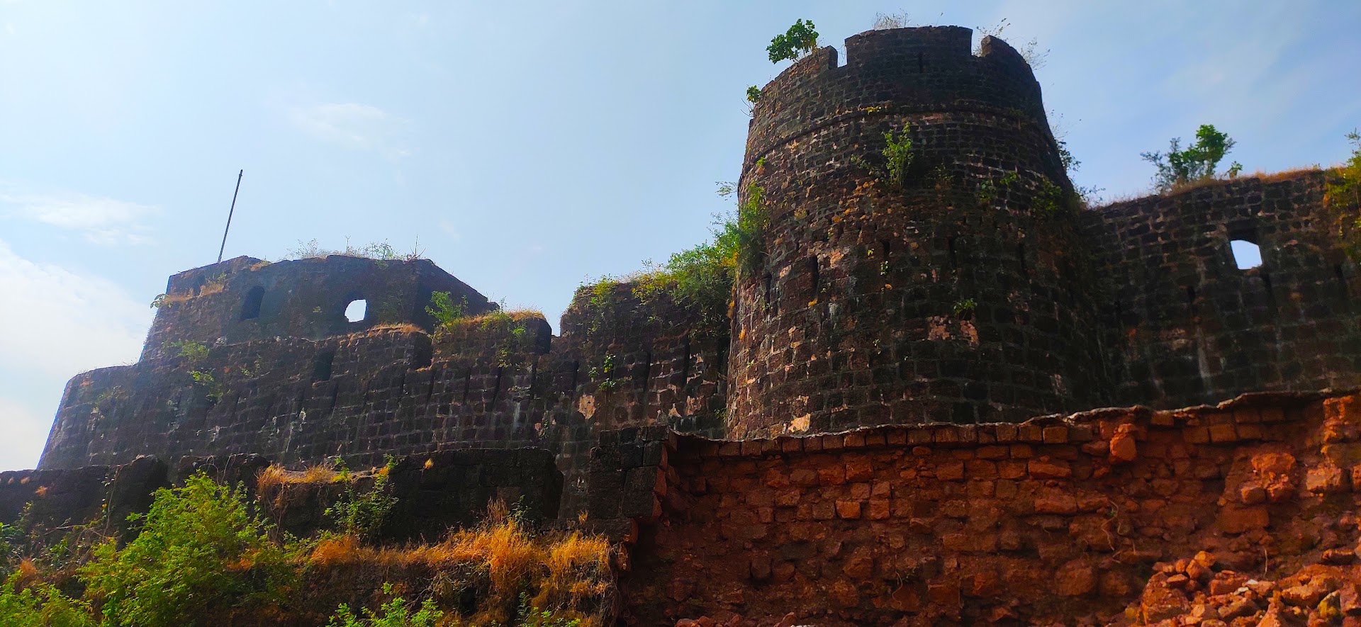 Most of the fort walls and bastions are still intact . The beauty of this fort is that it is locked by sea from 3 sides and connected to land from 1 side only. The fort provides great views of the sea, the creek, the greenery around and a small beach alongside it .