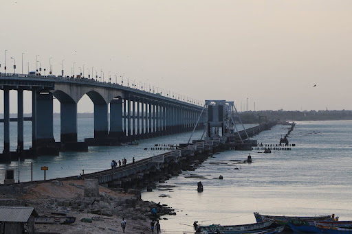 Read moreThe old Pamban Bridge was a railway bridge that connected the town of Rameswaram on the Pamban Island with Mandapam in the mainland India. It was opened on 24 February 1914, and was the India's first sea bridge, and the longest sea bridge until the opening of the Bandra-Worli Sea Link in 2010. It was a conventional bridge resting on concrete piers with a double-leaf section midway, which could be raised to let ships pass through. It’s total length was 2,065 metres and had 144 spans. This old Pamban bridge was the only surface transport link that connected Rameswaram to the mainland India until 1988, when a Road Bridge was constructed parallel to the Old Pamban Railway Bridge. The Pamban bridge was located in a corrosive marine environment which was a cyclone-prone, high wind velocity zone, so it needed frequent maintenance. In 2020, construction of a new Railway bridge closer to the existing one began which was planned to eventually replace the existing Pamban bridge as the bascule section had weakened significantly due to corrosion. In December 2022, rail transportation on the old Pamban bridge was suspended permanently and the New Pamban Bridge was completed in 2024. The New Pamban railway bridge is located 12.5 metres above sea level and is 2,065 metres long with 143 piers and has a double-leaf bascule section which can be raised to let ships pass. Earlier the railway line bifurcated from Pamban, with one line heading towards Rameshwaram and another line terminating at Dhanushkodi. The railway line to Dhanushkodi was destroyed during the 1964 Dhanushkodi cyclone along with the Pamban-Dhanuskodi passenger train, killing around 200 people. The Pamban Bridge is the lifeline of this holy town, connecting it to the mainland and facilitating the passage of pilgrims, tourists, and traders. The view of the bridge and sea from road is great though no one is allowed to stop , and there is a hefty fine. Pamban Island is also known as the...