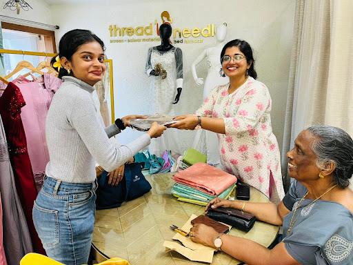I can't explain how pleased I was with how my dress turned out. I had a vision for how I wanted my bridesmaid dress to be but I was so nervous to trust any boutique. My experience at thread n needle was so seamless. Anup took care of this dress and he stitched it perfectly!! Everything from the neck to the length to the slit was done so elegantly. I even asked him if he could stitch a bow as a hair accessory with the extra material and even though he wasn't confident at first (he had never done it before), he made it and it was so so pretty. He didn't even charge me. Because I was so particular, they had to alter it a few times and make a few changes but they were so patient with me and took my feedback so seriously. After a few alterations, it was my dream dress. Such kind people, so attentive and so professional. I felt like a princess and I got so many...