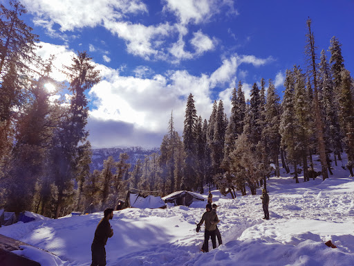 At the trek top, there is a stone-sheeted shrine of Lord Shiva, which is bordered by snow-covered mountains all around. A Trishul is positioned on the shrine’s ground, pointing towards the great blue sky.