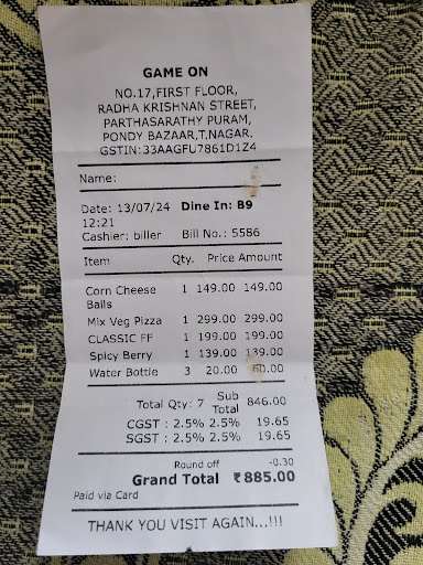 Has parking space for bikes but you'll have to park car on the road. Ambience was good, well lit and air conditioned. Colourful chairs and sittings for to set the mood. One can walk in pay for the games and start playing. Gameon is spacious and looks like there should be no waiting time to start gaming. People greeted us with a huge smile on their face and were very friendly. Adithya was the person who helped us with the games and he had the best attitude with the customers. Kept smiling always, cleared all doubts and was knowledgeable in all the games. Kudos to the man. Food seemed to be overpriced for what we paid and the quality could be better. We paid rs.152/- per person on a weekend and got an hour extra. Enquire for weekdays and drop in. Regarding games, they had plenty of genres. Word play, cards, puzzles, strategies and some games that were really fun to play along with friends.