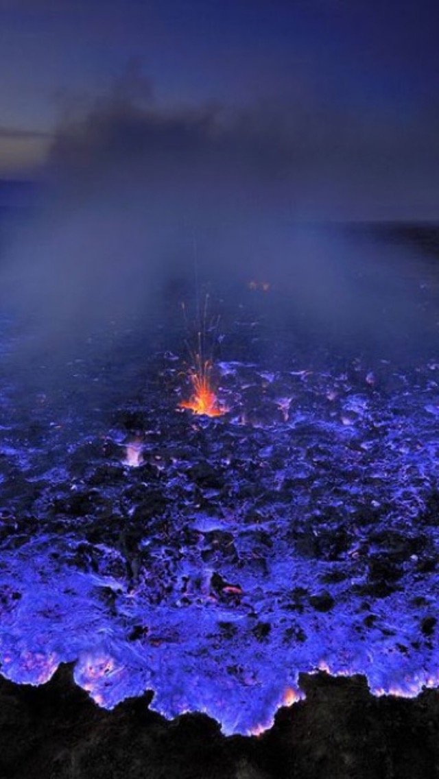At the bottom you should be able to see the unique blue flames where the sulphur fumes exit the vents, come in contact with oxygen, and ignite.