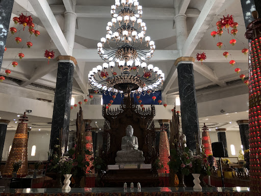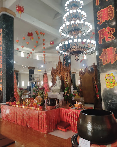 Melangkah di dalam pagoda, kita akan menemukan empat buah rupang Budha yang mulia. Patung Budha ini terbuat dari giok yang langsung dibawa dari Myanmar, yang di depannya terdapat deretan lilin-lilin kecil yang berada di atas meja untuk memanjatkan doa...