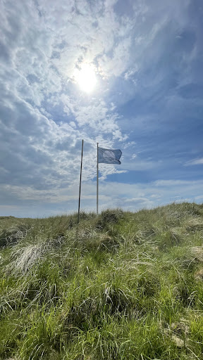 There are two entry points, one as you approach the coast straight at cul de sac and then another about a one kilometre if you turn right and head to the main car park via narrow road between the dunes.
