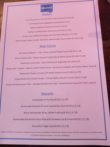 From the outside it looks like an old pub in Ballina But step inside its very modern and plush. Earlyish in the day I dropped in for a relaxing read of magazines and a paper bought down the road in Eason's. The day was chilly from the wind and I was glad to ensconce myself by the fire. Ordered a drink and it was chillout time for the next hour or so. I was meeting a friend that I knew in Ballina and she had suggested Bar Square. Great choice and as well great food. Heard a lot of comments from people that had come in after me and ordered food. All very complimentary. My food was very good, spicy wings. 👍 I give it 4 stars only because although the loos were very modern and clean there was a woful smell of urine. No complaints from my lady friend on her visit. Overall ! Well worth a visit. Great to relax in or meet...