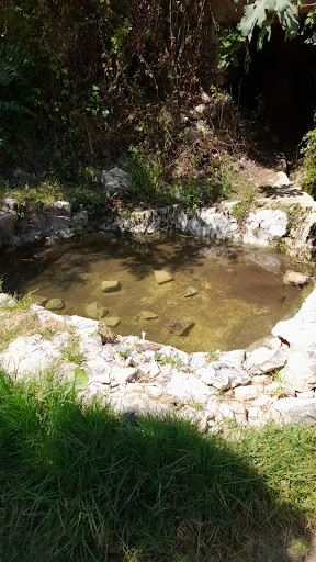 The spring feeds into several small, crystal-clear pools, surrounded by lush vegetation, including oak trees and vibrant wildflowers. The water, cool and refreshing, is an inviting place to cool off during the hot months. The surrounding area offers plenty of shade, making it an ideal spot for a picnic or a quiet moment of relaxation, as you take in the beauty of the surrounding hills.