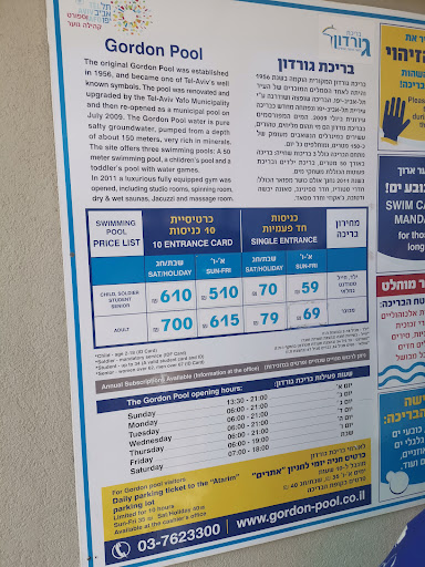 Read moreA lovely setting and a great pool. Olympic lengths and slightly shorter ones. The water is pumped up every day (OK, maybe every two days) from 150m below the sea bed. Cold and very salty. But it doesn't matter at all because the sun is shining and swimming in the sun is one thing of the best things in life. Reasonable but not great cafe outside overlooking yacht harbour just outside. Lots of places to eat on the beach nearby as well. Some minimal refreshments inside the pool but don't bother. Not cheap at NIS68 per...