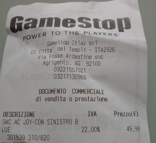 Read moreSalve a Tutti do 5 stelle a questo negozio GameStop perché mi piace da una vita da loro compro sia usato che nuovo e trovo sempre novità e ambientazione di un vero Gamer , no come in certi piccoli negozi sfigatati Di aGrigento che chiedi un gioco è non hanno mai niente e dicono lo vuoi prenotare oppure ti sparano un prezzo esagerato ma molto esagerato senza la equivalenza che un gioco uscito da molti mesi non puoi pretendere tanti soldi lo rivolgo alle persone che si fanno raccontare frottole di questi negozietti. Poi sulla valutazione non sono né nel bene e nel male sono uguali tutti. Ritornando sul negozio be non è male trovo tutto e di tutto come personalità al servizio do 2 stelle Perché non sono competenti a quello che vendono ai cliente che non ritornano più questo è da miogliorare .Ritornando a io sono soddisfatto del negozio CI...