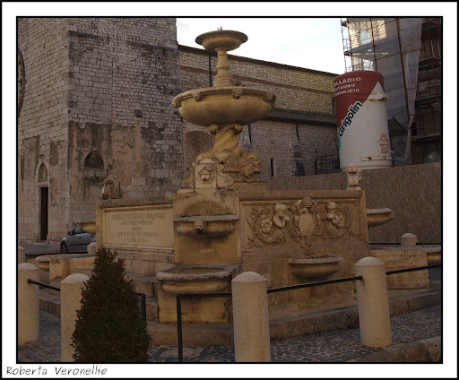 Al centro della rettangolare piazza S. Maria Maggiore fu innalzata la monumentale fontana Pia. Dedicata a Pio IX in segno di ringraziamento per la ingente somma di denaro data nei confronti della città, per la costruzione di un nuovo acquedotto. E’ una grande vasca quadrangolare dalla classica architettura ottocentesca, contrassegnata dalla struttura elicoidale dei delfini annodati intorno a due catini, sormontati da...