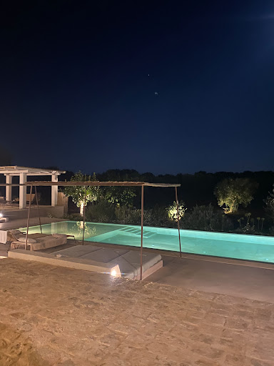 The villa itself, Casale La Cocca, was straight out of a Puglian fairytale—nestled among ancient olive trees, fragrant lavender, and fruit trees heavy with lemons, persimmons, and pomegranates. The home was stunning: perfectly maintained, elegantly decorated, and outfitted with everything a group could need. The air conditioning was excellent, the washer and dryer (complete with detergent, ironing board, and steamer) made packing light easy, and the pristine private pool was the perfect spot to relax after exploring nearby towns like Ostuni, Polignano a Mare, and Alberobello.