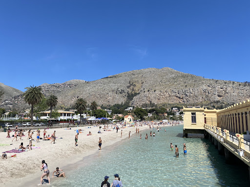 Read moreBellissimo impatto sul look della spiaggia di Mondello, emana storia e grandezza con le sue torri, i suoi pinnacoli e il colore chiaro che si riverbera suu mare cristallino del golfo. Visto in notturna dalla ruota panoramica installata di recente, si apprezza ancora di più l'armoniosita della struttura liberty. Peccato che a parte la zona che necessita a chi lo gestisce per lavorare, tutta un'ala è lasciata al degrado e completamente rovinata dalla salsedine. Visitato all'interno, sulla terrazza che dolcemente cala sul mare, sembra di tornare alla dolce vita, fuori dal tempo, con la brezza ad accarezzare i capelli e musiche e voci lontane come melodia. Un luogo suggestivo, certo affollato da moltitudini di persone di vario contesto, che rendono più o meno gradevole la permanenza, ma sicuramente un posto dove respirare la...