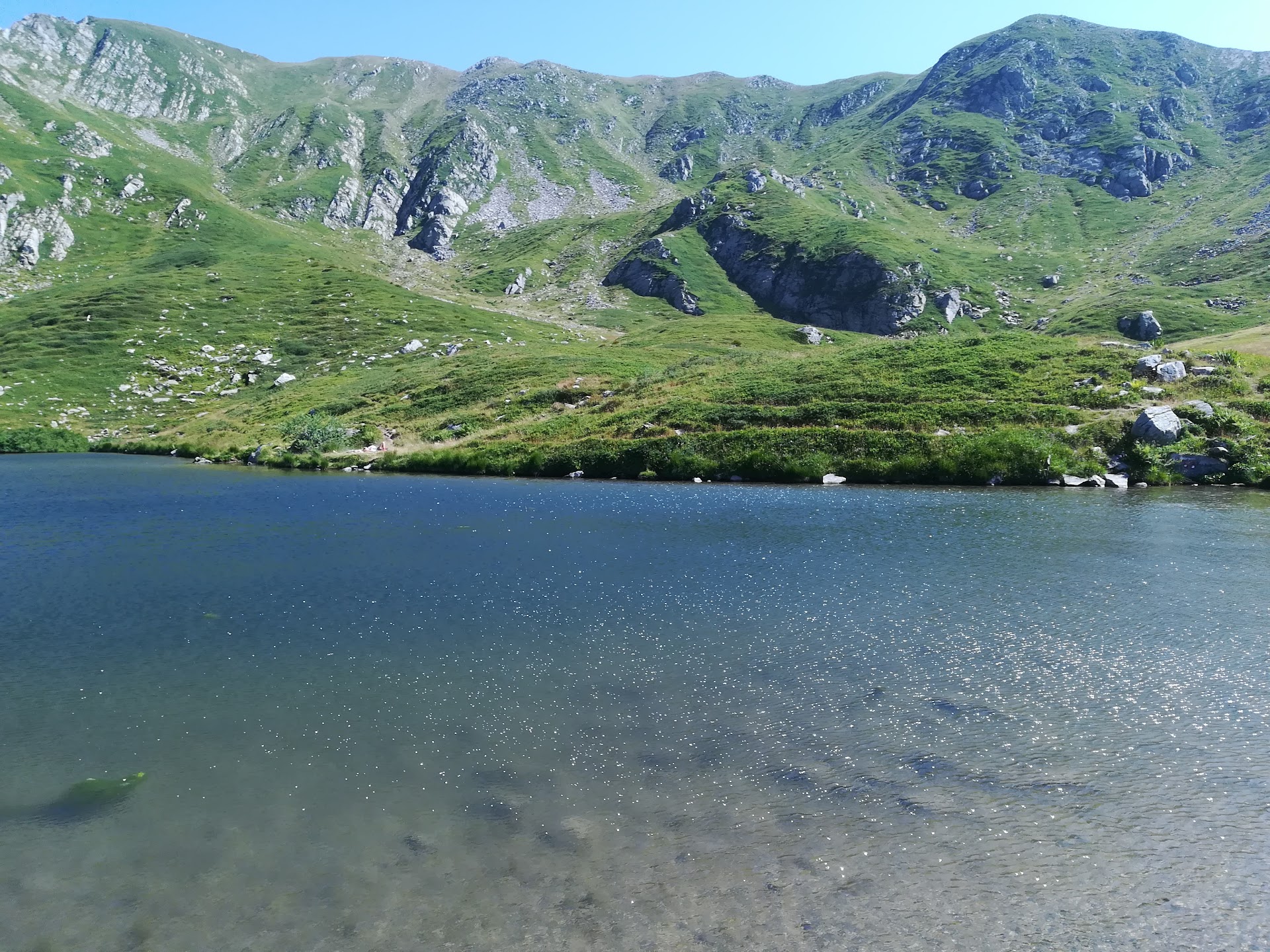 Il sentiero n°633 parte da Ligonchio e passando per la Presa Alta va ai Rifugi Bargetana e Battisti. Alla Presa Alta arriva pure una stradina (7 Km) che parte sempre da Ligonchio. Questa stradina si trova alla fine del paese dopo aver percorso tutta la strada che attraversa il centro abitato provenendo dalla Centrale elettrica. Al parcheggio di Presa Alta ci siamo arrivati in macchina. Poi... ci siamo incamminati su per un sentiero che zigzagando porta subito in alto fino ad incrociarsi col sentiero n°633 proveniente da Ligonchio. Il n°633 si sviluppa principalmente nel bosco. Il sentiero intervalla momenti impegnativi con tratti quasi pianeggianti fino al laghetto del Capriolo. Il fondo è perlopiù di terra battuta coperto da uno strato di foglie che ammortizza il passo. Passato il laghetto del Capriolo il sentiero riparte tutto in salita. Deve arrivare al Passo del Romecchio (m. 1680 circa). Il Passo è percorso anche dal sentiero n°00 che corre in quota raggiungendo il Monte Prado e via via tutte le altre vette che incontra lungo tutto il crinale dell'Appennino Tosco- Emiliano. Poco distante dal Passo del Romecchio - sul sentiero - fa bella mostra di sé la fioritura di Betonica hirsuta tra gli steli secchi d'erba sbattuti dal vento. Ai lati del sentiero grandi spazi ricoperti da cespugli di mirtillo intervallati da piante d'iperico fiorite accompagnano l'escursionista fino al Rifugio Bargetana. Guardando verso l'altro versante della vallata, il Monte Cusna osserva il nostro cammino con sguardo severo e sornione al contempo. Arrivati nei pressi del Rifugio, non ci sembrava vero dopo ore di cammino nel bosco... Oltrepassato il Rifugio Bargetana - ci siamo fermati il minimo indispensabile per richiedere alcune informazioni - abbiamo puntato al Laghetto della Bargetana. L'acqua del lago è trasparente e riflette il colore del cielo. Alcune persone tenevano i piedi a mollo nell'acqua altre semplicemente stavano sdraiate sull'erba attorno al lago. Il Monte Cipolla così come il crinale che dà sul lago sembravano messi lì a guardia di questo tesoro che è il Lago...