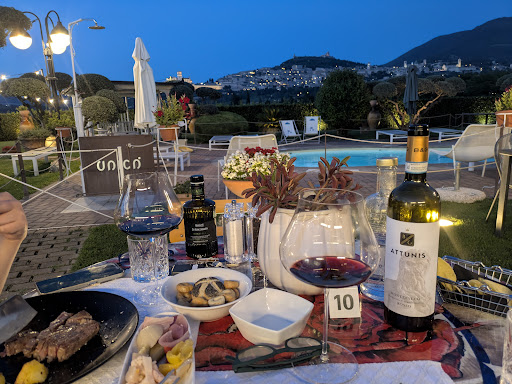 Read moreSono stata un paio di giorni in questa struttura con la mia famiglia. |La location è bella, con una splendida vista sulla città di Assisi. |Gli ospiti possono anche usufruire di una piccola piscina da cui parimenti si gode il panorama sulla città . Ci sarebbe anche una piccola vasca idromassaggio all'esterno che però durante il mio soggiorno non era stata pulita.|La camera da letto era abbastanza comoda. Segnalo solo la mancanza di un porta valige e l'aria condizionata non proprio efficientissima. |Bagno pulito e doccia con soffione grande e spruzzetti a muro. |Come prodotti monouso da bagno in dotazione c'erano soltanto le shower cap.|Il punto di forza della struttura è sicuramente la colazione con una vasta scelta di torte fatte in casa, tutte buonissime! Da segnalare in particolare la gentilezza ed affabilità della Signora Gemma in sala. |Abbiamo provato anche l'elegante ristorante annesso alla struttura: cibo buono e personale di sala molto attento ai clienti.|Nel complesso, sicuramente consiglio un soggiorno qui se si vuole visitare Assisi godendo della tranquillità della campagna (e comunque comodo per raggiungere qualsiasi posto nelle vicinanze).|Complimenti a...