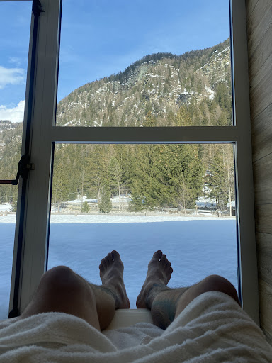 Read morePremessa: avrei dato 3.5 ma non si può. Non ho dato 4 perché nonostante il potenziale si dovrebbe migliorare qualcosa. La struttura potrebbe essere curata un po' meglio, a primo impatto sembra carina ma esaminandola meglio ci si accorge che andrebbe fatta un po' di manutenzione. Nella zona termale all'interno ci sono quattro vasche: La più grande e anche la più profonda ha l'acqua a 33° e dispone di due grandi getti a cascata; Nella seconda l'acqua è a 35°, qui ci sono tre piccoli getti a cascata, un idromassaggio a seduta che non è un gran ché e altre tre postazioni di idromassaggio (le uniche che meritano veramente); Nella terza vasca non si capisce la temperatura, forse anche questa a 33° ma come nelle altre quando entri la temperatura sembra un po' più bassa, in questa quasi sembra sotto i 30°; anche in questa ci sono due grandi getti a cascata; L'ultima è la vasca per i bambini. All'esterno c'è una vasca molto piccola, penso che 10/12 persone sia il massimo della sua capienza, anche qui ci sono tre postazioni di idromassaggio. Tutti i getti e le cascate sono temporizzati. Confermo che nella zona relax si sente un po' troppo il rumore di tutto il centro, ci sono le porte che chiudono ma sono rimaste tutto il tempo spalancate. Peccato perché è una bella sala ampia, con tante sdraio comode e vista sulle montagne innevate. Le vetrate in generale sono un po' sporche/rovinate e non fanno apprezzare pienamente la bella vista. Incluso nel biglietto c'è la possibilità di andare al bar a prendere dell'acqua, delle tisane e uno yogurt molto buono, il tutto senza limitazioni. Molto apprezzato! Negli spogliatoi ci sono gli armadietti, due bagni e le docce con i dispenser del sapone, peccato che erano vuoti. Non ho visto la zona sauna e bagno turco. Comodo parcheggio all'estero. Riassumendo: il centro ha del potenziale, la vista dall'interno e all'estero è molto suggestiva, il costo forse è un po' eccessivo per il servizio al momento offerto, staff molto gentile. L'esperienza tutto sommato è stata positiva, spero di tornarci e di vedere però dei...