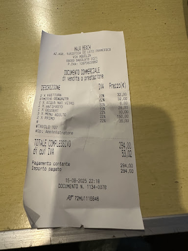 Siamo stati al Maja Beach Club la sera di Ferragosto con la mia famiglia. La prenotazione era stata fatta tre giorni prima e, parlando direttamente con il proprietario, ci era stato confermato che a cena ci sarebbe stato il menù alla carta (mentre a pranzo il menù fisso). Avevamo scelto di andare a cena proprio per questo motivo, desiderando ordinare pesce crudo e altre specialità presenti in carta.