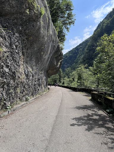 Read moreOgled stare ceste z označenimi galerijami zgrajenimi leta 1953 za 3 eur. Pripada vam čelada, ki je brez jermena in nerodna za oglede v globino soteske. Zelo zanimiva pot z lepimi razgledi mogočnih klesanih skal ob zeleni reki Cellina. Vhod ali izhod je z dveh strani. Ob starem jezu je konec poti. Možnost ogleda s kolesi, a je bolj doživeto uživati kot pohod v naravni lepoti soteske in vijugaste stare ceste. Priporočam vsem, tako odraslim kot otrokom. Za popestritev je v soteski možnost kratkega adrenalinskega prečkanja reke po Ponte Tibetanico. (izposoja pasa 3 eur). Pri izhodu za Mosollo je edina okrepčevalnica ostaria na zanimivem kraju nad sotesko. Lepo urejeno, priporočam ogled in obisk vseh zanimivosti v soteski. Klopi za počitek verjetno v soteski ni zaradi nevarnosti...