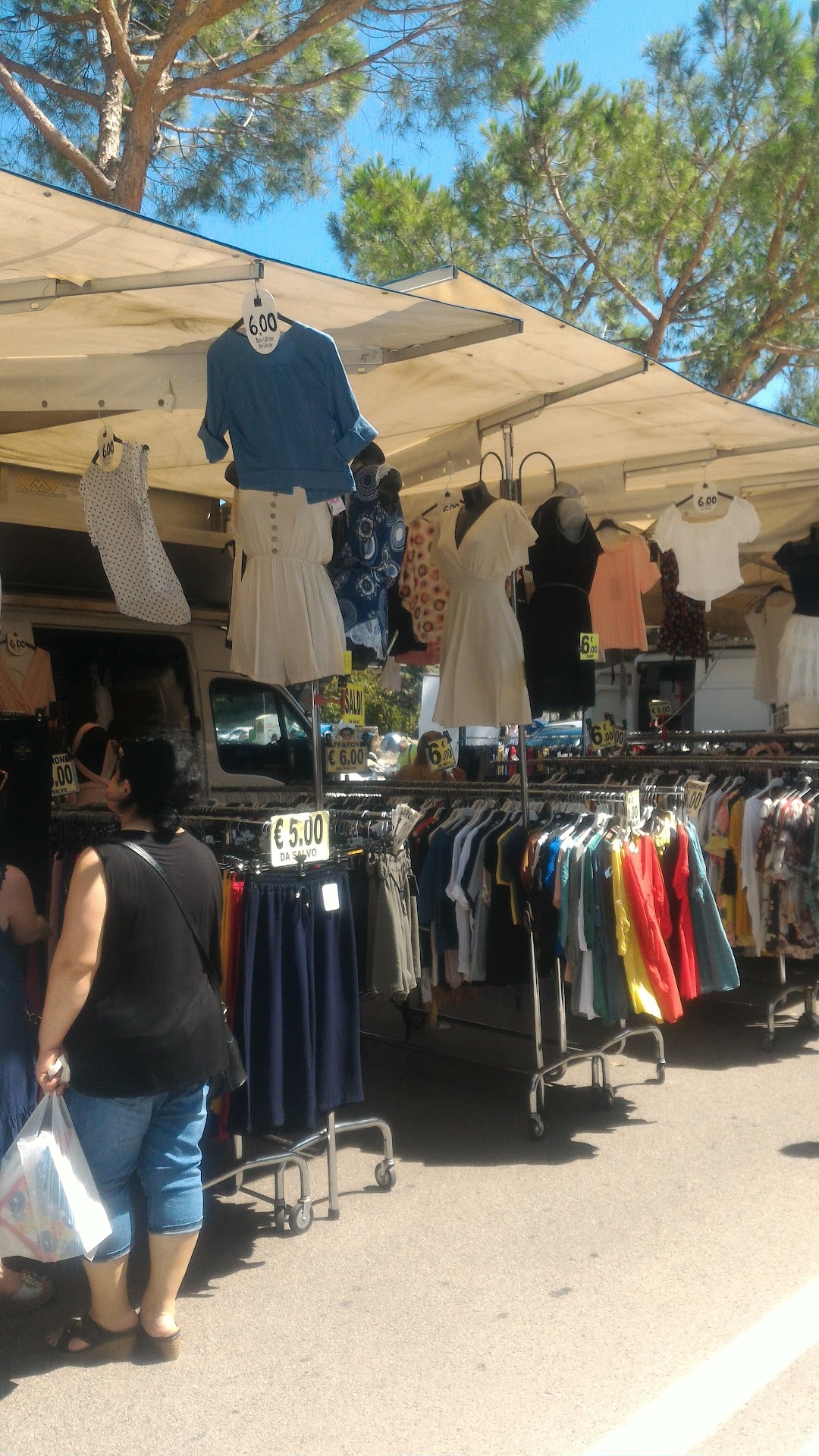 Situato in posizione ideale, poco trafficata, è un mercato di merci varie. Molte bancarelle hanno la stessa merce di origine chiaramente cinese. Se si sa scegliere si trovano cose carine e di fattura accettabile. Tra tante si trovano bancarelle che vendono merce migliore come qualità e si possono fare degli ottimi acquisti per quanto riguarda l'abbigliamento. Ho acquistato dei capi che indosso ancora e che fanno la loro figura. Ho trovato capi di biancheria intima di marca che hanno fatto una buona riuscita. Tutto sta nel saper scegliere e avere pazienza a cercare. C'è la possibilità di acquistare scarpe di ottimi materiali e design a prezzi vantaggiosi rispetto ai negozi. C'è una bancarella che vende ottimi biscotti, taralli e dolcetti a buon prezzo. Nel complesso un buon mercato dove si possono fare buoni affari se si ha occhio...