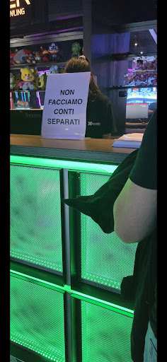 Posto pulito, nuovo, e bello ma rovinato da: MUSICA DAVVERO TROPPO TROPPO ALTA. Non si riescono neanche a sentire i suoni delle attrazioni, un gruppo vicino a noi ha smesso di utilizzare in corsa l'attrazione del ballo perché non riusciva neanche a sentire la canzone sulla quale doveva ballare. Una Musica che ti costringe ad andar via dopo poco per evitare mal di testa, oltre che essere tutta di un unico stile (Rap e simili) Per il Bar, brutta esperienza: Ho ordinato una CocaCola alla spina, e nel tempo che ho inserito i contanti nella macchinetta, la ragazza mi ha portato un bicchiere stracolmo di ghiaccio con una cocacola (zero o normale non me l'ha neanche chiesto). L'ho fatto notare al barista, mi ha detto che non è normale, che non ricapiterà, ma sarebbe stato carino rimediare nell'immediato, non la prossima volta. Per quanto riguarda le attrazioni sappiate che funzionano tramite una tessera da ricaricare, con i Pro ed i Contro della cosa. Ma sono davvero molto belle ed interessanti. La Pista da Bowling piccola rispetto alle standard.
