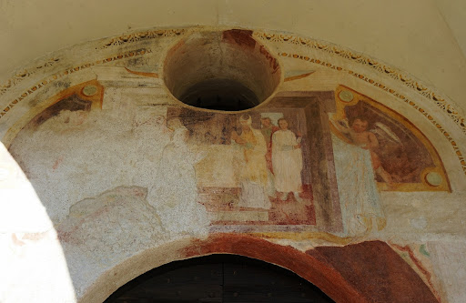 Read moreSituata in panoramica posizione elevata rispetto al centro storico, la chiesa si fa ammirare sia per il campanile romanico delle fine dell'XI secolo (insieme a poche tracce dell'abside è l'unico particolare superstite dell'originaria chiesa romanica che era orientata sull'asse est-ovest) che per il complesso ciclo di affreschi che arricchisce l'interno, dipinti risalenti soprattutto alla prima metà del 1500 eseguiti da artisti ignoti di scuola piemontese e lombarda. Sapientemente restaurata pochi anni fa la vecchia parrocchiale è visitabile la domenica ed i giovedì dei mesi estivi (da giugno...