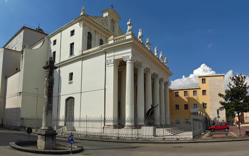 L’edificio colpisce per la sua architettura neoclassica e per la pianta a croce greca, equilibrata e armoniosa. Davanti alla facciata si ergono le statue dei Santi protettori di Benevento — San Bartolomeo, San Gennaro, San Barbato, San Francesco, Sant’Antonio e San Rocco — che conferiscono solennità e carattere al complesso.