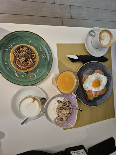 Read moreStamani vi abbiamo fatto colazione e apprezzato la brioche "cubica", uno scrigno ricoperto parzialmente di cioccolato, che custodiva al suo interno cubetti di pere e una soffice e buonissima mousse al cioccolato (non ne sono sicuro, ma credo che ogni stagione dell'anno abbia la propria versione della cubica). Di elevata qualità anche la fetta di panettone che abbiamo provato. In aggiunta, un caffè americano e una tazza grande d'orzo per un costo totale di 10 90 euro... la qualità ha un prezzo che, per quanto ricevuto, è parso coerente. Un solo appunto. Soprattutto in giornate freddine come quella odierna, per chi come me ama bere un caffè americano ben caldo dovrebbe essere previsto che la tazza grande venga scaldata prima di versarvi il caffè espresso; in difetto, la temperatura dell'acqua calda del bricco (servita a parte) viene quindi un po' mitigata e il risultato finale è un caffè poco più che tiepido. Ma è un dettaglio, probabilmente importante soltanto per me.... Non cambia il mio giudizio...