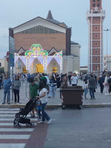 Read moreLa nuova Basilica-Santuario Santi Medici Cosma e Damiano, é stata costruita nel Secolo scorso, per poter contenere le migliaia e migliaia di fedeli in visita ai loro Protettori. È una Basilica imponente, vastissima, importante sotto tutti i punti di vista! Ha esterno ampio, esteso,con Obelisco al centro della piazza sottostante e, Portale in bronzo, raffigurante scene scolpite della Passione di Gesù Cristo. Alle sue spalle, si eleva un altissimo Campanile dominante sull'intera area circostante. L'interno, ha pianta allungata e, un'unica,molto larga Navata, con quattro file di banchi perpendicolari a tutta la sua lunghezza, in legno d'ulivo scuro. L'altare maggiore, è di una semplicità, inusuale, rispetto all'imponenza di tale Santuario, come pure L'Abside, a tre livelli di scalini sui quali poggia. Altrettanto, tutto il resto dell'impianto, è semplice, sobrio, con alcune statue ,come quella della Pietà in marmo grigio chiaro e,la statua di Madre Teresa di Calcutta, di enorme rilievo. Mentre, in alto, al centro dell'Altare maggiore, vi é, racchiusa in una teca, la Statua dei Santi Martiri e Medici, venerati da tutto il mondo, cui è dedicata la Basilica. In questa famosa Basilica, si svolgono tutte le più speciali funzioni religiose del paese:dai Battesimi alle Prime Comunioni,ai Matrimoni più in primissimo piano. C'è anche l'ingresso per le persone disabili. É, questa, una Basilica, perennemente in primissimo piano, e la sua influenza si ripercuote, e si avverte, in ogni...