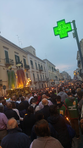 La basilica odierna è stata edificata tra il 1960 e il 1973, su impulso del vescovo Aurelio Marena, per accogliere la crescente devozione popolare verso i santi Medici, prima custoditi in una chiesa ormai troppo piccola. Fu solennemente consacrata il 19 marzo 1973 e, nel 1975, elevata a Basilica Pontificia Minore da papa Paolo VI . Bitonto venera le reliquie dei santi Cosma e Damiano almeno sin dal 1572, con una presenza devozionale documentata anche nei secoli precedenti . La basilica è stata pensata come una “clinica dello spirito e del corpo”, ospitando anche opere caritative e strutture di accoglienza sul modello di centro comunitario e di sostegno sociale . Disposta su una pianta a croce latina, l’edificio vanta un’unica navata lunga circa 60 metri e un transetto di circa 20 metri . L’interno è caratterizzato da elementi di grande impatto visivo: una cattedra in granito rosso, una struttura in cristallo che custodisce le statue dei santi, e una nicchia con le reliquie delle loro braccia e mani . Sulla parete sinistra si trova un mosaico maestoso, opera di Giorgio Saltelli, raffigurante la Madonna Immacolata che appare al generale Montemar durante la battaglia di Bitonto. Questa immagine, dallo stile quasi bizantino, è un richiamo profondamente amato dai visitatori . La controfacciata ospita un imponente organo a canne realizzato da Ruffatti nel 1971, dotato di 60 registri su tre manuali e pedale . Ogni anno, la comunità celebra i santi Medici in due momenti principali: Il 26 settembre, durante la memoria liturgica. La terza domenica di ottobre, con la tradizionale processione esterna detta “intorciata”, che attira decine di migliaia di fedeli. La processione è caratterizzata da cammini a piedi nudi, con pesanti ceri, e sguardi rivolti alle statue, simbolo di devozione intensa . Durante il Giubileo della Speranza del 2025, la basilica è stata inclusa tra le chiese giubilari dell’arcidiocesi, sottolineando il suo importante ruolo spirituale . Negli ultimi anni sono stati realizzati restauri conservativi che hanno reso la basilica più sicura, meglio illuminata e accogliente per i pellegrini . Inoltre, l’area esterna è stata arricchita con sei ulivi simbolici, migliorando l’accesso e il decoro dell’ingresso. I nuovi alberi sostituiscono quelli vecchi e pericolanti, contribuendo alla sicurezza e all’estetica del luogo . La basilica non è solo luogo di culto: grazie alle opere della Fondazione Opera Santi Medici, offre servizi concreti come mensa per i poveri (circa 20.000 pasti l’anno), accoglienza di donne in difficoltà, ambulatorio medico, vincolo pastorale e attività educative e sportive...