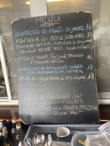 Pranzo : 2 stelle solo ed esclusivamente per il cibo buono e di qualità. Altrimenti era 1. 500 tipi di insalate, 200 tipi di panini e 1 solo tipo di primo. È arrivata l insalata alla mia compagna, poi il primo a me, a seguire i condimenti.. (passati poi alla signora del tavolo a fianco che aspettava li da un po). Quindi mi sono alzato io per andare a prendere le bevande dal frigo. Incontrando il cameriere e chiedendogli i bicchieri me li passa Caldi da lavastoviglie e li ho rifatti cambiare, calcolando che la temperatura ambiente era di 25 grandi all ombra. Il mio thè sarebbe evaporato. Chiedo il pane che mi arriva tempestivamente dopo circa 15 min alla seconda richiesta. Il cameriere mi riferisce : " l importante è mangiare " . Ad un tratto mi passa davanti un bellissimo piatto di Cozze che il cameriere mi riferiva all ordine che erano terminate. Richiamandolo ripropongo l ordinazione delle cozze al posto del fritto ancora da fare. Chiedo il limone una volta arrivate, e adesso che sono a cena ancora lo sto aspettando. Al caffè ci siamo arresi e siamo andati al bancone. Il titolare si giustifica che il personale è stagionale ed inesperto. Nel conto c era un dolce che non...