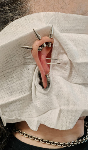 Sono andato da loro per due fori nel conch, quelli che si vedono nelle foto. Il piercer mi ha consigliato la posizione migliore in base ai gioielli da piercing che volevo usare, ma soprattutto tenendo conto dell’anatomia del mio orecchio. Ha risposto con pazienza a tutte le mie domande, spiegandomi perché certi punti sono adatti e altri no. Si capisce subito che ha una conoscenza approfondita dell’anatomia e un occhio clinico sia per l’allineamento che per l’estetica del risultato finale.