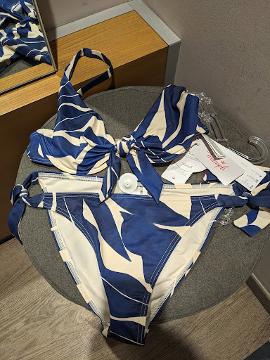 Read moreIeri, 24 maggio 17, sono entrata per cercare un costume in questo negozio. Premetto che io ho un seno abbondante ed una conformazione (a quanto pare) difficile, quindi non è facile per me trovare qualcosa di adatto. Nonostante fosse ora di pranzo e avessimo superato abbondantemente l'orario di chiusura pomeridiana del negozio, la commessa (Karen se non erro) /si è mostrata sempre gentile, disponibile e sorridente. Mi ha aiutata a trovare più di un indumento che mi piacesse (miracolo) e si è comportata sempre in modo solare, paziente e professionale. E' stato molto carino anche il ragazzo che c'era in cassa di cui purtroppo, mi scuso, ma non ricordo il nome. Bellissime collezioni, fantastici i dipendenti. Un negozio davvero bello in cui ho speso volentieri e nel quale tornerò di certo....