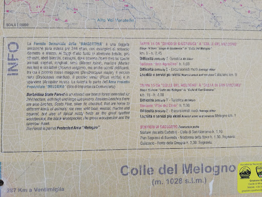 Read moreFAGGETA DELLA BARBOTTINA Il colle del Melogno si trova ad una ventina di minuti dall'uscita dell'autostrada di Finale Ligure. All'arrivo, dopo essere passati attraverso il tunnel nelle antiche strutture militari, si può imboccare sulla sinistra (prima del Ristorante "Il Rifugio") una strada sterrata che fa parte dell'Alta Via dei Monti Liguri. Tenendo sempre la destra e seguendo le indicazioni bianco/rosse, si percorre a piedi una strada sterrata che passa attraverso una meravigliosa foresta di faggi, la cui ombra è perfetta in queste afose giornate estive. In circa un'oretta, superati parecchi bivi, un cancello e una sbarra, si giunge alla Casermetta del Corpo forestale dello Stato. La passeggiata è perfetta da fare in estate anche con bambini molto piccoli. Una parte è in salita (dolce), ma dopo il cancello è in piano. Lungo il percorso e presso la Casermetta si trovano panchine per fare un pic-nic. Poco oltre sulla sinistra c'è un punto panoramico roccioso dove si vede il panorama fino al mare. Consigliato per una bella giornata nel bosco...