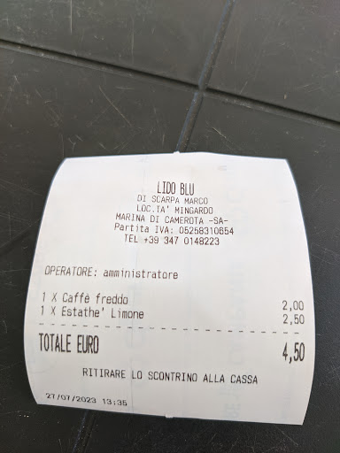 Aggiungo che giorni dopo sono tornato per usufruire dei servizi del bar avendo, questa volta, portato un ombrellone per la spiaggia libera adiacente e mi è stato dato un pre conto al posto di uno scontrino fiscale palesemente spacciandolo per tale,...