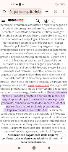 Premetto : metto una stella perchè se lascio a zero non posso pubblicare . Esperienza che rasenta la truffa . Prenotato una Play station 5 presso il Game Stop dei Gigli a Firenze da regalare a mio figlio anticipando 260,00 euro e costretto a prendere un pacchetto che faceva lievitare il prezzo dai consueti 499,00 euro a circa 750,00 altrimenti non mi consideravano neppure , e va bene . Mi dicono di portare la mia PS4 funzionante , con cavi e controller e mi avrebbero scalato 150,00 euro ( ingenuo a crederci ) . Controllando la mia play mi dicono che il controller era usurato e non lo potevamo ritirare così ( era funzionante e senza ammaccature ) e mi dicono che invece di 150,00 euro me la valutavano 100,00 , e va bene . Gli dico di aspettare un attimo inquanto essendo in un centro commerciale , sicuramente avrei trovato un controller a poco , e il ragazzo me lo sconsiglia dicendomi che i controller costavano molto di più di 50 euro , io spippolo sul telefono e vedo che a 24 euro lo vendono a media word , per l'appunto all'interno della stesso centro commerciale , glielo faccio vedere e mi viene detto che non è originale e anche quello non lo possono ritirare , e va bene . A questo punto mi porta la mia play 5 e noto subito che negli accessori che c erano nei famosi 750,00 euro , ci sono in dotazione delle piccole cuffie . Al quanto stupito chiedo al ragazzo : scusami , ma quelle per te sono le cuffie originali ? No , perchè , se compro un prodotto nuovo , pretento che il tutto sia originale , visto anche il prezzo al quale viene proposto . Lui candidamente mi risponde : no, non sono originali . A quel punto non ci ho più visto dalla rabbia ! Scusa , Mi dici che non mi puoi più valorizzare la mia play 4 al prezzo pattuito perche il controller è usurato ( normale direi ) , ti dico che te ne porto uno nuovo di pacca e mi dici di no perchè devono essere pezzi originali e poi tu mi vuoi dare a 750 euro una play 5 nuova con pezzi di concorrenza ??? Ma stai scherzando ???? A quel punto mi sembrava anche inutile continuare a discutere . Ho intimato il ragazzo a rendermi i soldi versati come anticipo in quanto non solo la gestione della vendita è stata pessima , ma volevano evidentemente ricavare il massimo guadagno da questa operazione , con prodotti non del tutto originali . Inizialmente ho detto " rasenta la truffa " perchè non so quali sono i limiti per dichararla tale , ma sicuramente se non lo è , ci...