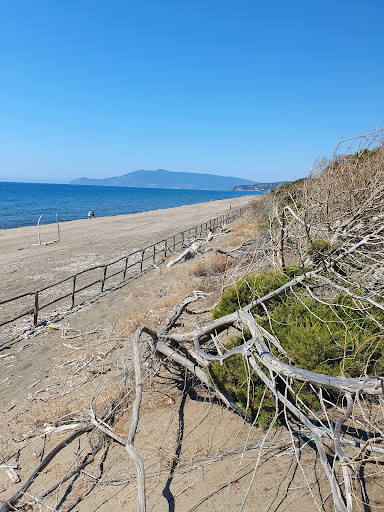 Ci si arriva con una via asfaltata, da poco messa a nuovo, dalla provinciale litoranea, ed è perciò la spiaggia più accessibile per chi sta a Capalbio. Da Capalbio Stazione in estate c'è un servizio comunale di navette. Una volta arrivati, c'è un parcheggio con qualche posto libero, del tutto insufficiente d'estate, e uno a pagamento, con sbarra, a pagamento orario all'uscita. Gratis per chi ha contrassegno "sosta disabili". Agevolazioni per i residenti. Qui i posti sono molti di più, ma pure questo nelle ore di maggior affluenza si riempie. La spiaggia è libera, ma ci sono due stabilimenti, con altrettanti ristoranti, aperti in stagione e almeno uno in qualche ponte, telefonate per l'apertura fuori stagione e per prenotare d'estate. C'è pure un bar - bistrot, il Sandy Beach anche questo stagionale, e un piccolo rimessaggio per piccole barche. Sulla spiaggia libera si possono affittare (al Sandy Beach o a un altro esercizio) lettini e ombrelloni, a buon prezzo. È una spiaggia non presidiata, davanti è mare aperto, con il fondo sabbioso a tipico andamento ondulato: magnifico se il mare è calmo, impegnativo se non lo è, proibito ai meno che molto esperti se ci sono onde e corrente, anche se in apparenza non rilevanti. Sulla spiaggia libera è vietato introdurre animali, ma (purtroppo non segnalato all'ingresso), appena un centinaio di metri dopo il Sandy Beach, collegato con una passerella in legno, c'è la spiaggia per cani, anche questa ad accesso gratuito: entri in spiaggia e vai a sinistra guardando il mare. Per chi fosse interessato, al centro, appena si arriva, c'è un casale restaurato da poco, sede del Country Club, e il loro stabilimento esclusivo: stessa spiaggia stesso mare, e le persone che ci stanno, in mutande (da bagno) sembrano uguali a noi. Ma per andare a stendersi là, hanno versato un pacco di soldi, ma davvero...