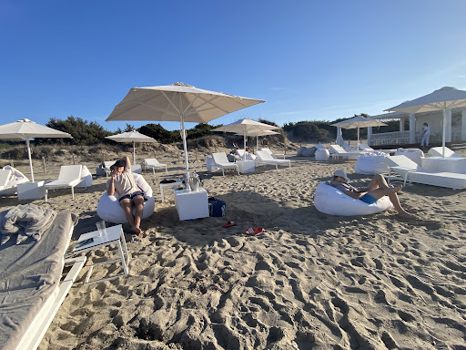 Beautiful resort. Private for guests staying in the resort or for guests booking a day package. The beds are super comfortable, the beach is just beautiful, a blue flag beach. The water clear and shallow, perfect for children. The staff were attentive and friendly, included in your package you're given your beds, beanbags, umbrella and tables and lovely large towels... you also get a glass of fizz and some snacks from the chef around 12pm. You are also provide water all day in an ice bucket thats regularly changed in the heat. Staff are always around and are happy to take any requests. The restaurant has delicious food, and whilst the price might be slightly inflated compared to a normal restaurant, the portions were large and the quality was delicious! Whilst you're at lunch or in the sea the staff come and kindly clean your beds from sand and also shake off your towels and place them down again, truly a VIP service. Location is easy to find on Google maps and parking is sheltered from the sun.
