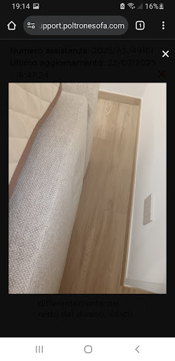 Il divano è arrivato circa tre mesi fa– voglio tralasciare il modo in cui è stato consegnato – ed é stato posizionato inizialmente davanti alla finestra nel soggiorno quindi vicino al muro. Dopo circa due mesi, rientrando finalmente in casa, ci siamo accorti che spostando il divano la parte posteriore presentava una rientranza evidente nella struttura. Un danno che non era visibile (data la vicinanza al muro) né tantomeno come accusa l'assistenza causato da noi, data la sua posizione. La vera assurdità é questa: abbiamo subito contattato l’assistenza clienti, convinti che un’azienda che si vanta tanto della qualità e del servizio avrebbe gestito il problema con serietà. Invece ci siamo sentiti presi in giro due volte: ci hanno chiesto un preventivo da 180€ per la riparazione e ci hanno fatto intendere che il problema fosse da attribuire a noi. A dir poco vergognoso tutto questo! Aggiungo inoltre che, oltre la spesa cospicua per acquistare un divano (di non qualità), abbiamo anche aggiunto una bella somma per estendere la garanzia CHE IN REALTÀ NON ABBIAMO AVUTO AFFATTO.